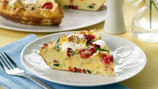 Tomato, Pepper, Bread, and Ricotta Frittata
