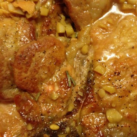 2. Heat oil and butter in skillet over medium high heat. Cook pork chops until browned on both sides and pork is slightly pink 5-7 minutes each side. Transfer Pork to a oven proof pan and place in oven at 350 for about 15 minutes to finish cooking pork