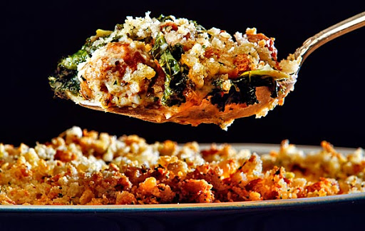 9. Sprinkle the topping evenly over the sausage and kale mixture.