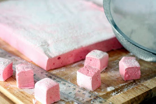 Puree raspberries in a food processor or blender. Pour the puree into a fine mesh strainer set over a bowl and use a spoon to force the puree through the strainer, leaving the seeds behind. Alternatively, run the raspberries through a food mill to remove the seeds. There may be more puree than is needed for the marshmallows. Store the remainder in the refrigerator. (Lightly sweetened it makes a delicious sauce)