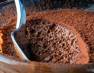 5. Divide the mousse between 6 4-ounce ramekins and smooth out the tops. Refrigerate the mousse for at least 6 hours or up to 3 days. Sift cocoa powder over the top of the mousse before serving.