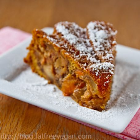 In a large bowl, combine the flour, baking soda, salt, and cinnamon. In a large measuring cup or small bowl, mix together the water, orange juice, 1/2 cup agave nectar, cider vinegar, and vanilla. Make a well in the center of the dry ingredients and add the wet ones along with the soy yogurt or apple sauce. Stir until well-moistened. Fold in apple mixture.