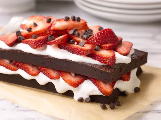 Garnish with a sprinkle of mini chocolate chips on top of the strawberries.