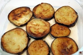 Cortar las berenjenas en rodajas de 1/2 cm más o menos, untar las dos caras de mayonesa y pasarlas por la mezcla de queso y pan rallado. Colocarlas en un placa de horno y hornear hasta que se vean doradas. Cuando estén doradas por ambos lados (las levantamos un poquito para comprobarlo), sacarlas y servir