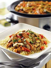 3. Cover and cook on high 4 to 6 hours. Add chickpeas and parsley 30 minutes before serving. Serve over cooked brown rice or quinoa, and top with almonds.