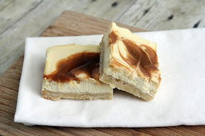 Dollop the caramel sauce mixture over the filling (I didn't end up using all of the caramel). Use a toothpick to gently marble the caramel - be careful not to scrape the crust while you are doing it. Bake for 20-25 minutes, or until the edges are puffed and the center is just barely set.