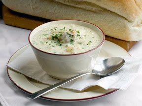 Skim any foam off fish stock. Add potatoes, onion, celery and pepper; cover and bring to boil. Reduce heat and simmer until tender. Return fish to pan. Pour in milk and heat through without boiling. Taste and adjust seasoning. Swirl in butter. Transfer to heated tureen or soup bowls and serve immediately.