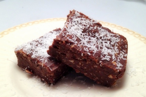 Press into and 8x8 pan that has been lightly coated with coconut oil. Sprinkle top with some coconut, or leave plain. Refrigerate until firm. You may need to turn the pan upside down and run warm water over it briefly to loosen. Turn out on waxed paper, cut into small squares. Store in covered container in refrigerator.
