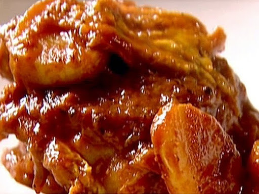 Carefully pour the sauce into the bowl of a food processor fitted with the steel blade. Puree until smooth. Return the sauce to the Dutch oven and add the sliced potatoes and browned chicken pieces with their juices. Stir carefully.