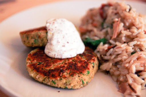 Heat a small amount of oil in the pan – I brush it evenly over the entire pan using a pastry brush. When it is a fairly high heat (but not smoking) add the patties and cook for 10 minutes on each side. Their exterior should be golden and crunchy.