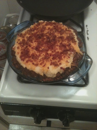 One of those unusual dishes that you have to taste to believe. Toppings can vary how you want, it's a pretty basic switch out - pickles, ranch dressing, pineapples and teriyaki. Though maybe that would be strange with the mashed potatos.