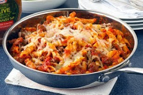 ADD pasta sauce and water; mix well. Stir in pasta. Bring to boil; cover. Simmer on medium heat 16 to 18 min. or until pasta is tender; stir.