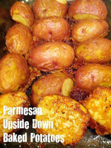 2). Sprinkle Parmesan cheese and seasonings over butter. Place potatoes cut side down and sprinkle more seasonings on top of potatoes.