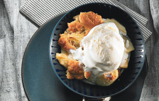 Using fingertips, break up streusel clumps into smaller pieces and sprinkle streusel topping over apples. Bake until apple mixture is bubbling and streusel is golden brown, 50 to 55 minutes. Cool slightly. Serve cobbler slightly warm topped with vanilla ice cream.