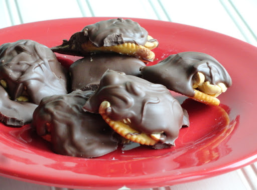 Cover cookie sheet with heavy duty foil. Lay out 36 Ritz crackers on cookie sheet.