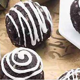 2. Combine vanilla chips and oil in small microwave-safe bowl. Microwave on High 30 to 45 sec. or until melted, stirring once during cooking. Dip tops of balls in melted chips, or drizzle over balls. Store in air-tight container for several hours to allow flavor to develop.