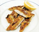 Either serve the chicken breasts whole, or cut them into strips and pile them on a plate. Beautiful and simple served with lemon wedges for squeezing over the top.