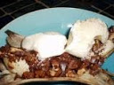 4 scatter the split with chocolate and nuts, then serve with ice cream.
