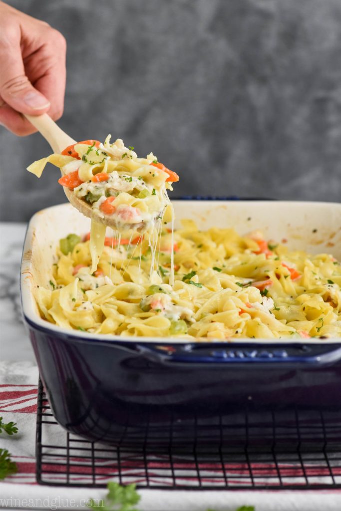 This Chicken Noodle Casserole recipe is the BEST! It comes together with all the flavors of homemade chicken noodle soup but in a delicious cheesy chicken noodle casserole. This cheesy chicken noodle casserole recipe is the definition of comfort food!