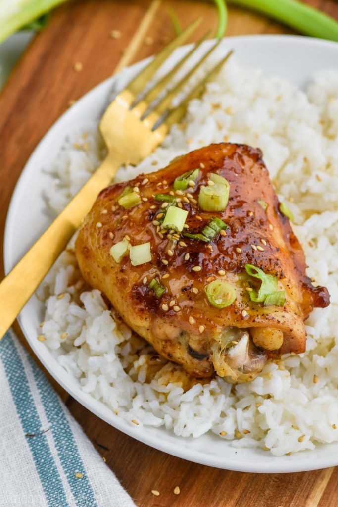 These Baked Honey Garlic Chicken Thighs come together in one pan and are so easy. They are delicious, and rich and perfect served on a bed of rice.