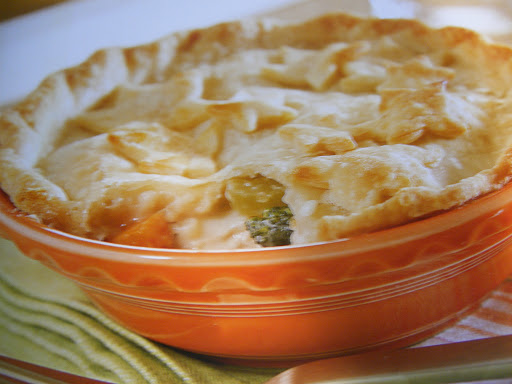 Preheat oven to 400. Roll out pastry 1" larger than diameter of casserole on lightly floured surface. Cut slits in pastry to vent; place on top of casserole. Roll edges and cut away extra pastry; flute edges.