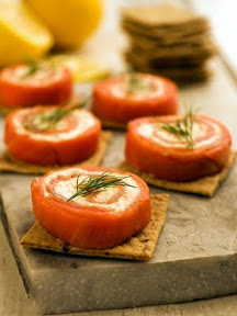 Refrigerate or freeze for several hours to help it firm. When the roll is firm enough to cut, slice it into even rounds. Place each round on a cracker, sprinkle your favourite garnish on top and serve.