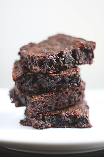 Preheat oven to 350 F and grease an 8×8 inch square baking dish. In a medium size bowl, mix together the rice flour, cornstarch, sugars, cocoa powder, baking soda, and salt, making sure to get rid of any lumps.