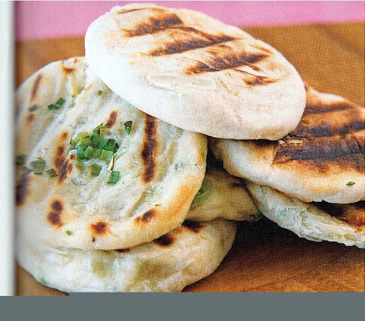 Lay the rounds of dough on the oiled grill rack. Cook, turning once, until the breads are browned, about 3 minutes on each side.