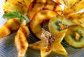 Grill fruit 1 to 2 minutes on each side, then drizzle with honey.