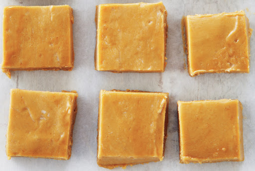 Immediately scrape into parchment paper–lined 8-inch (2 L) square baking dish; smooth top. Let cool on rack. Lift out onto cutting board; cut into squares.