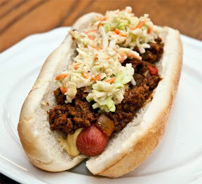 Here's a mayonnaise based creamy cole slaw that's not too sweet and a few little tweaks to make it really special. Hash it and heap it on top of a pulled pork sandwich as they do in Memphis or the Carolinas. It would be a great choice for a West Virginia Slawdog (at top).