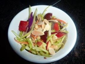 Wake up your taste buds with this sweet, savory and slightly tart slaw made easy using pre-packaged slaw, fugi apples. grapes, lemon juice and sesame dressing.