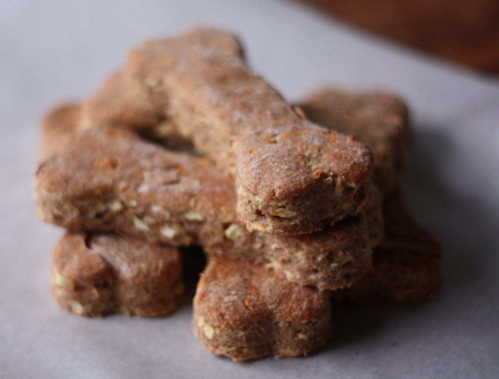 Place dog cookies on baking sheet and bake 35 minutes. After baking, turn oven off and leave cookies inside for another 30-45 minutes until crisp.