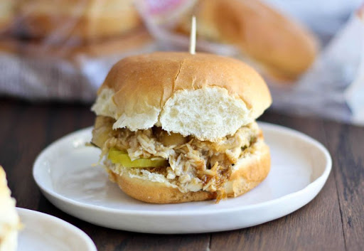 6. Serve on slider buns with pickles and sweet bourbon glaze.