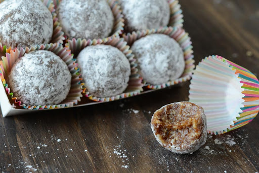 2. Scoop a large teaspoon-size portion and roll into balls using your hands. Coat each ball in powdered sugar. Refrigerate for 30 minutes before serving.