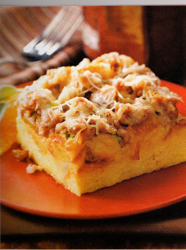 3. Remove from the refrigerator 30 minutes before baking. Bake, uncovered, at 350 degrees F for 60-65 minutes or until a knife inserted near the center comes out clean. (Cover loosely with foil if top browns too quickly.) Let stand for 10 minutes before serving.