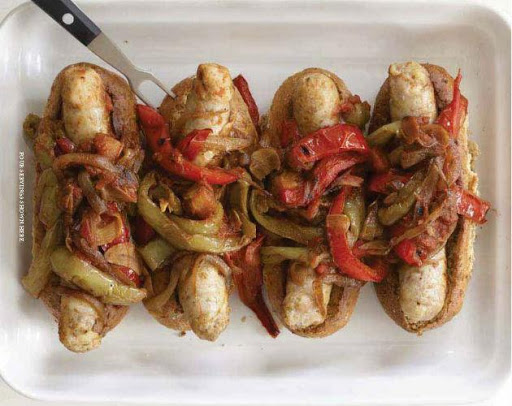 5.Split hot dog rolls and toast them under the broiler until lightly browned. Place each roll on a plate; place 1 link of sausage on each roll, then top each sausage with pepper and onion mixture.