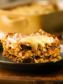Lightly oil a 9- x 13-inch (3.5 L) baking pan. To assemble the lasagna, layer the ingredients in the pan in this order: 2 cups (500 mL) or so of the meat sauce, a layer of noodles, half of the cheese sauce, a third of the grated Parmesan cheese, another noodle layer, another meat sauce layer, another noodle layer, the remaining cheese sauce, a third of the grated Parmesan cheese, another noodle layer, the remaining meat sauce, the remaining cheese sauce and the remaining Parmesan cheese.