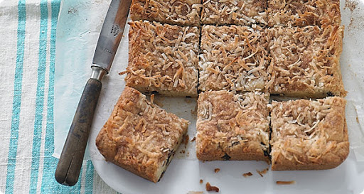 Sprinkle coconut and cinnamon-sugar over top of dough.