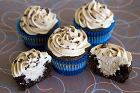 To make the nutella filling, whip the cream until stiff peaks form. Beat in the nutella. Scoop the filling into a piping bag and pipe into the center of each cupcake.