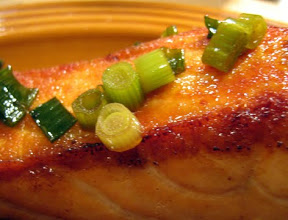 Add rice vinegar, mirin, fish sauce, soy sauce and most of the green onions (reserve about 2 Tbsp. for garnish) to the pan. Whisk sauce until slightly thickened, Add the juice of 1/2 lemon and stir to combine,