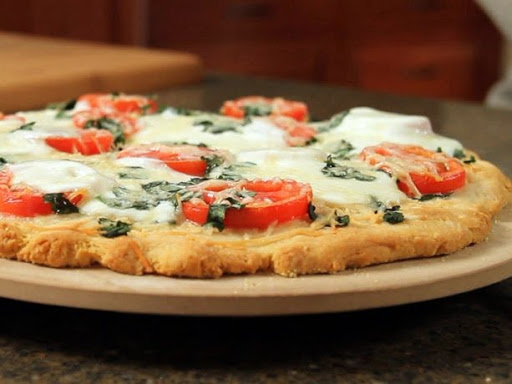 3. Remove dough from oven and brush with remaining tablespoon of oil and top with sliced tomatoes. Follow with cheese slices, basil, and finish by sprinkling Parmesan across the top. Bake 10 to 12 minutes or until crust is golden brown and cheese is melted.