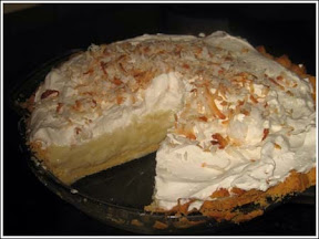 Pour the filling into the prepared pie shell. Cover the pie with plastic wrap and place in the refrigerator. Chill the pie completely, about 2 hours. Using an electric mixture, whip the egg whites until stiff with the remaining sugar. Spread the meringue evenly over the top of the pie. Sprinkle the top with the toasted coconut. Place the pie in a pre-heated 350-degree oven and bake for about 8 to 10 minutes or until golden. Remove from the oven and cool.