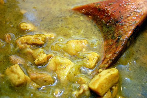 After the chicken has cooked for about 7 minutes, add the cloves, cardamom and cinnamon. Cook for another minute.