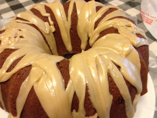 Place the cake on a plate and drizzle the icing evenly over the top, allowing it to run over the sides slightly. Sprinkle on the remaining 2 tbsp toasted pecans, then let stand until the icing sets, about 1 hour. Serve immediately, or cover with a cake dome and store at room temperature for up to 1 day.