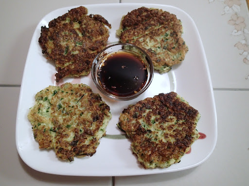 Heat oil in a large skillet over medium heat. Working in 2 batches, drop 1/4 cupfuls of zucchini mixture in skillet, flattening slightly, cook until golden and crisp about 3 minutes per side. Drain on paper towel. Makes 6 patties. Serve with sauce.