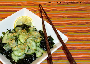 ENSALADA DE ALGAS Y PEPINOS CON CAMARONES ( SUNOMOMO )