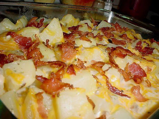 Author indicated this was very simple to make. They mixed potatoes with main ingredients before putting them in the pan and topped with additional cheese and bacon.