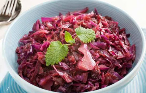 Braised cabbage is a delicious dish when prepared well. Bacon always adds a lot of savory flavor, and apples add sweetness for balance.