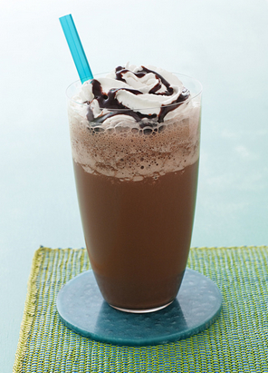 Make the frappes: Puree 8 coffee ice cubes, 1/2 cup milk, 1/3 to 1/2 cup chocolate syrup and 1 cup plain ice in a blender until smooth. Pour into 2 glasses, then repeat to make 2 more drinks. Top with whipped cream and more chocolate syrup.
